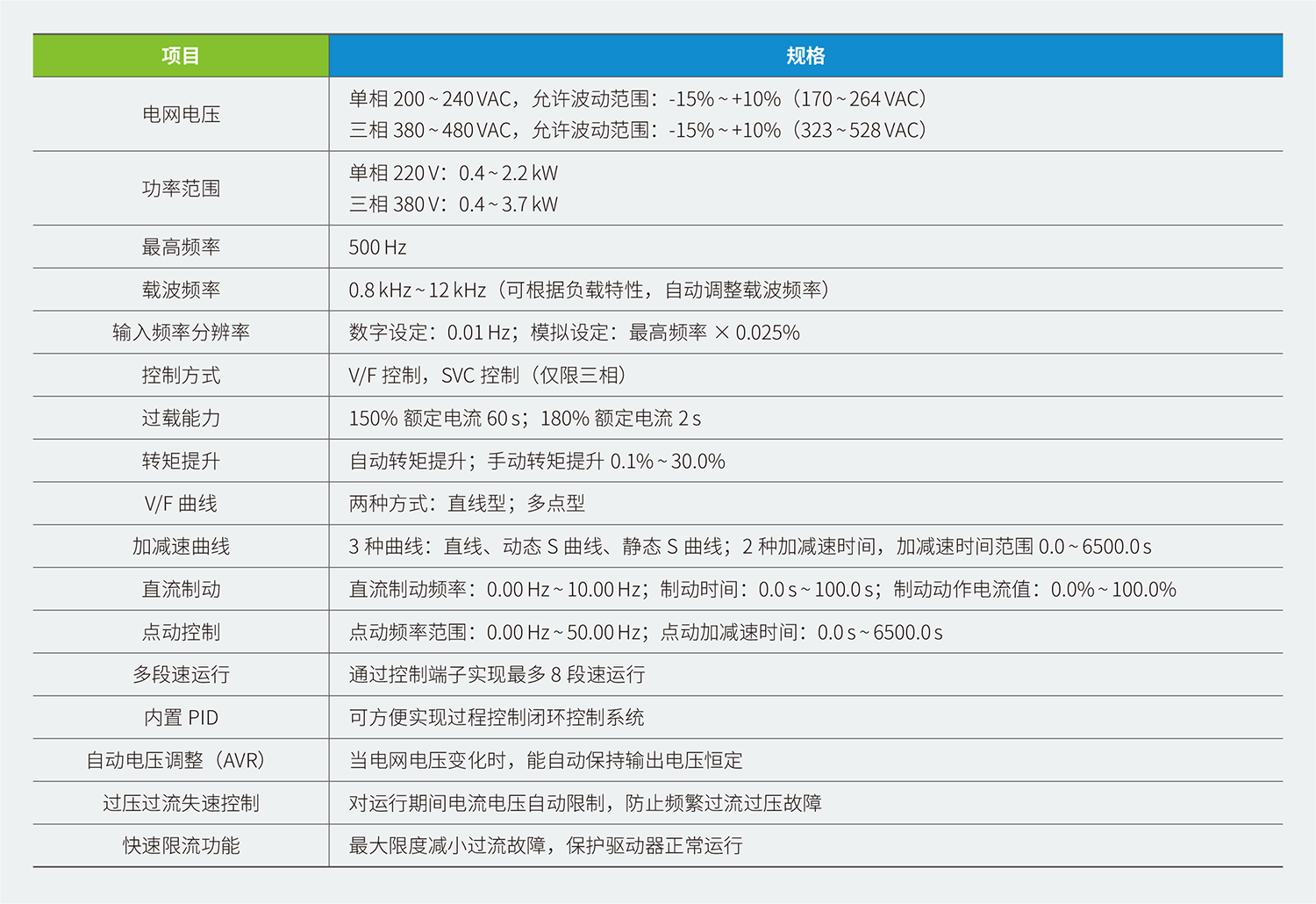6、更大的額定電流設計,過載電流更大,加速時間更短